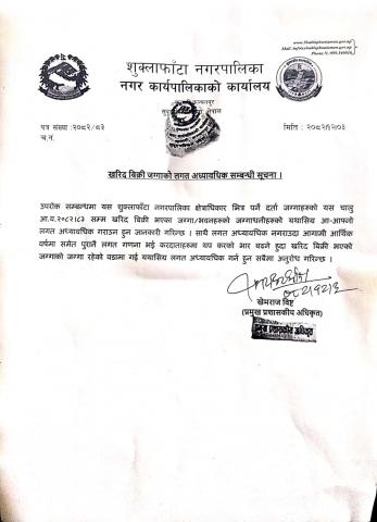 खरिद बिक्री जग्गाको लगत अध्यावधिक सम्बन्धी सूचना