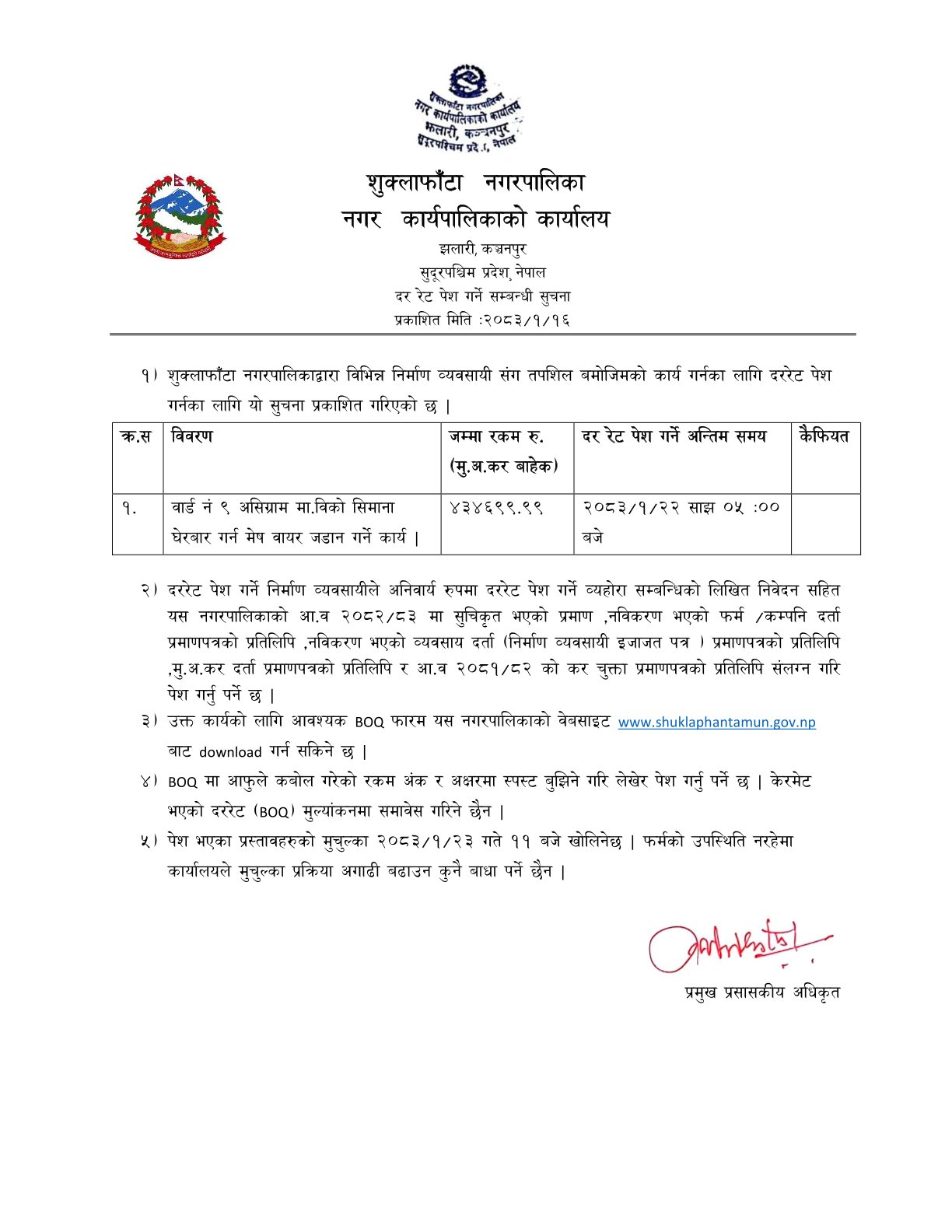 दररेट पेश गर्ने सम्बन्धी सूचना असिग्राम मा वि मेस वायर