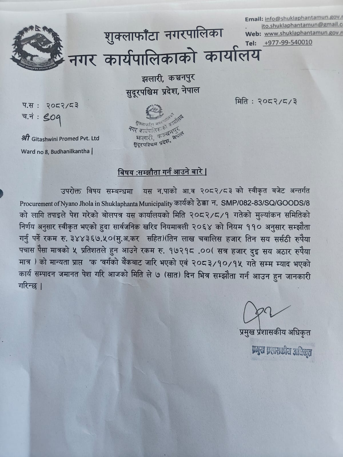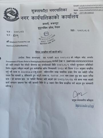 सीलबन्दी दरभाउपत्र स्वीकृतिको जानकारी- न्यानो झोला