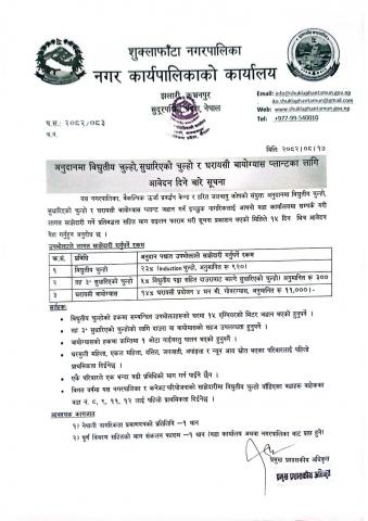 अनुदानमा विद्युतिय चुल्हो, सुधारिएको चुल्हो र घरायसी बायोग्यास प्लान्टका लागि आवेदन दिने बारे सूचना