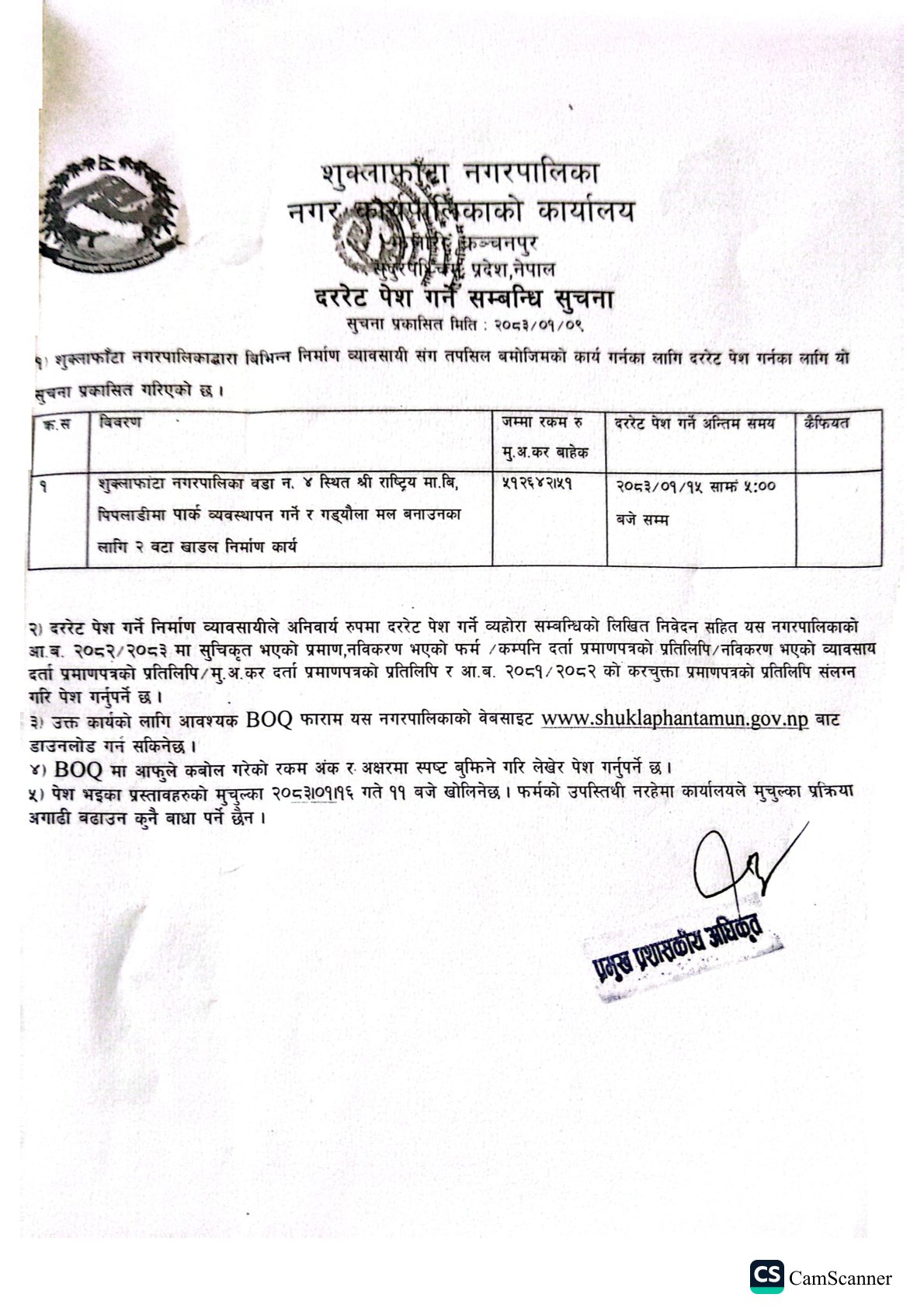 दररेट पेश गर्ने सम्बन्धी सूचना वडा नं. ५