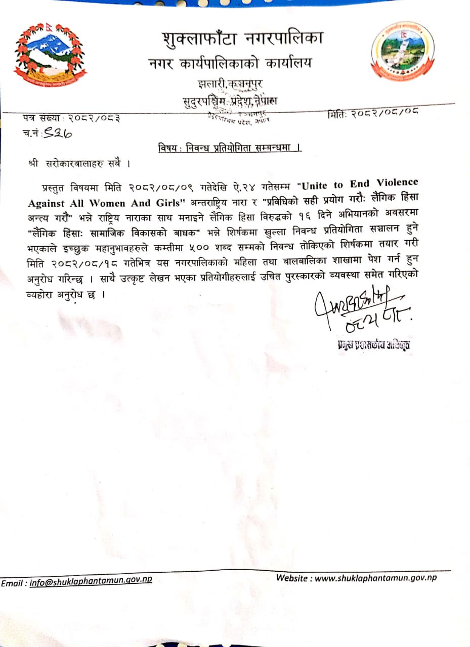 निबन्ध प्रतियोगिता सम्बन्धमा