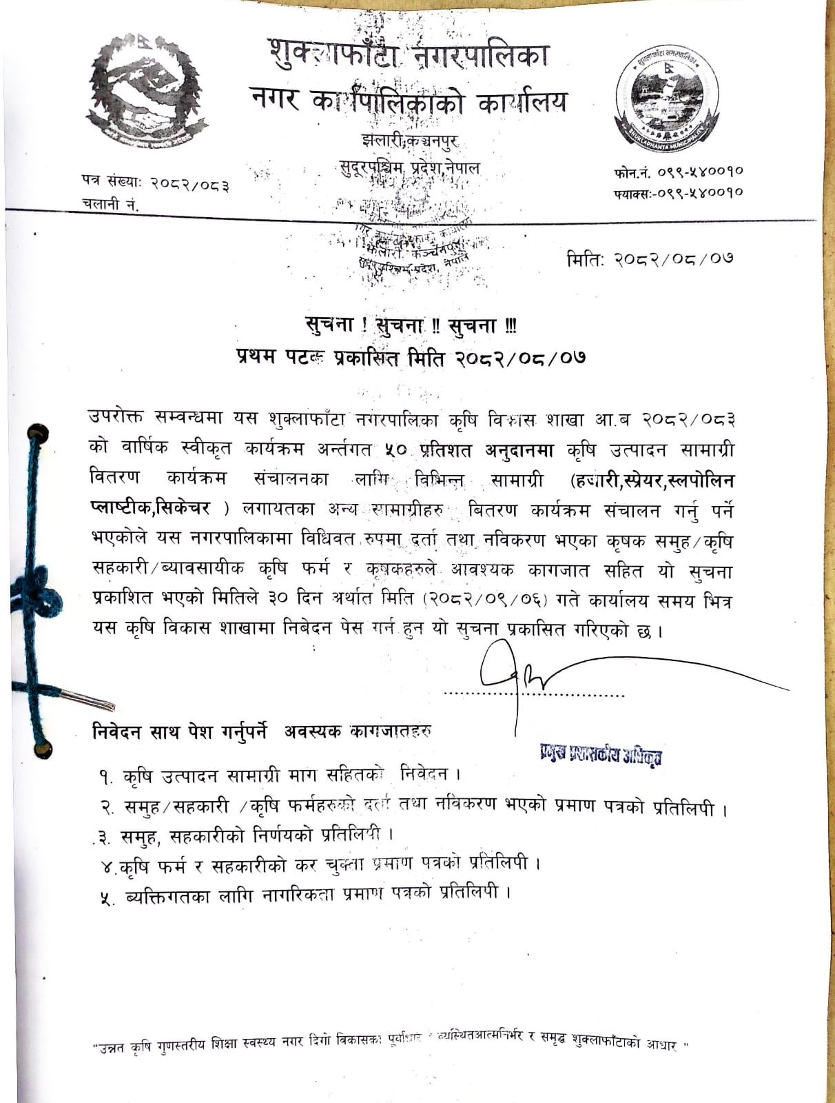 ५० प्रतिशत अनुदानमा कृषि उत्पादन सामग्री वितरण सम्बन्धी सूचना