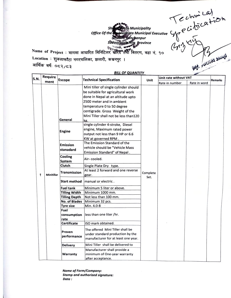 सार्वजनिक खरिद/बोलपत्र सूचना