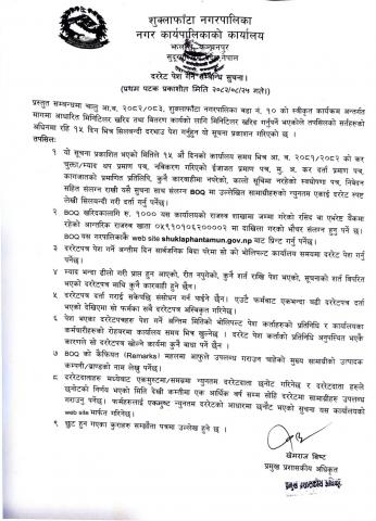 दर रेट पेश गर्ने सम्बन्धी सूचना