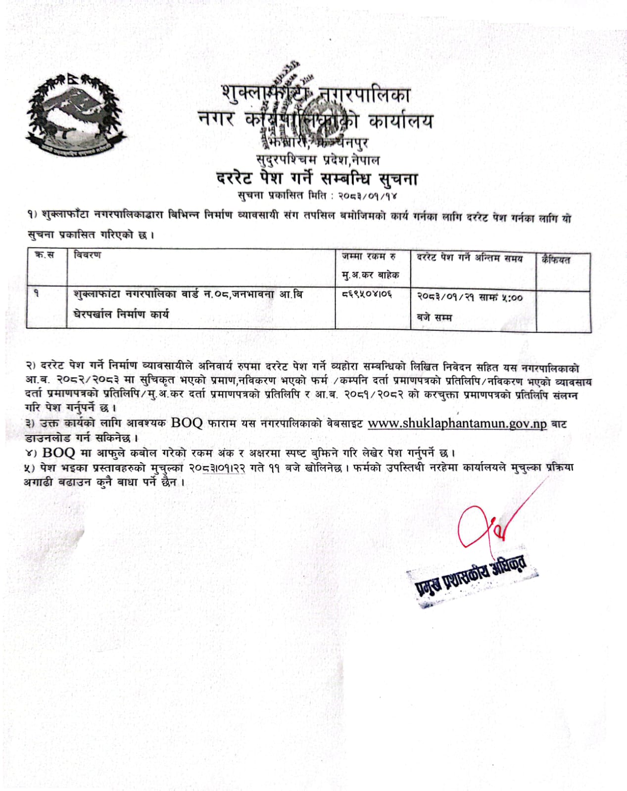 सार्वजनिक खरिद/बोलपत्र सूचना
