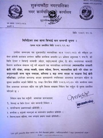 मिनिटिलरतथा साना सिचाई माग सम्बन्धी सूचना